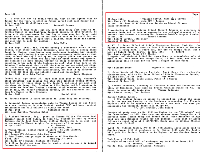 1616 – William Gainye arrived on The George – On October 13 of 1626, Thomas Spelman, William Gainye, William English, and Frances Mason appeared in court in James City and were granted permission to “goe for England”. No reason for the visit is found. Mason and Gainye had family connections, Ganey had also arrived on The George in the 1616 (Dorman, p. ) with Thomas Spelman. Ganey petitioned Governor Wyatt in 1623 for wages and reimbursements owed to him by the deceased Captain Nuse, describing himself as an employee of Nuse who had paid the debts and wages to other employees since Nuse’s death, indicating he may have been an accountant for the Company Land at Elizabeth City. (Jefferson Papers, Vol. 4, p. 455-456) Ganey’s 200 acre land grant describes him as a mariner seated at the harbor of the Hampton River, near Spelman’s plantation. In various records, William Ganey is listed as arriving on the The George, The Bona Nova, and The Treasurer, which could indicate business travel. Records do not indicate that these men were with Spelman when he died shortly after arrival in County Cornwall, England.
