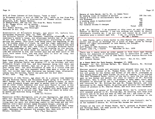 1624 Oct 10: Robert Sweete gent sworne and Examined sayeth that hee harde Capt John Marten demand of divers the planters at Kickotan whether they had receved Satisfactions for the wrongs had been offerd them. wch yf they had nott he bid them lett it rest untill he