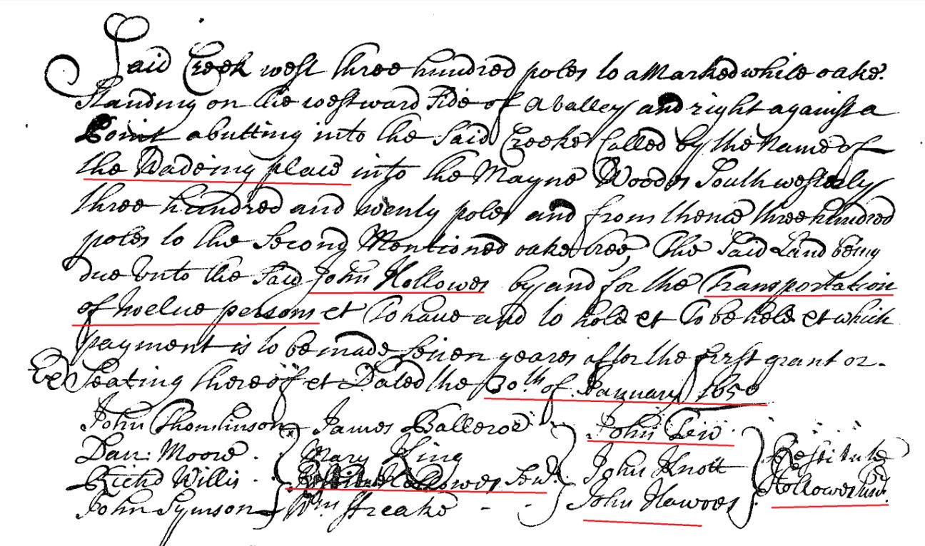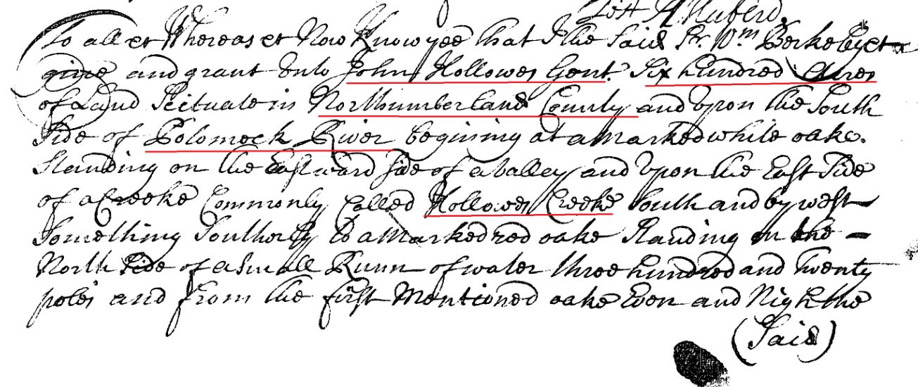 - John Hollis b. 1700 (Note: possible descendant – living in Prince William Co, Va in 1739, and Fairfax Co, Va – exact connection not found yet, but since in area very close to land John Hallowes b. 1612-15 owned, it is a possibility that needs to be verified if possibe)