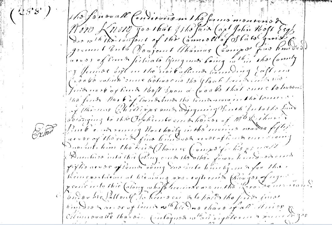 1689 Aug 17: 17 Aug. 1689. Henry Thompson of James City County, planter, and Mary his wife, one of the daughters of Morris Hurd, to John Gowin of York County, For £10 sterling. Land bounding on the Reedy swamp which was sett apart for Mary’s share of the land given to her sister Ann. From: York County, Virginia Deeds, Orders, Wills, Etc., No. 8 – Part One 1687-1691 – Abstracted and Compiled by John Frederick Dorman