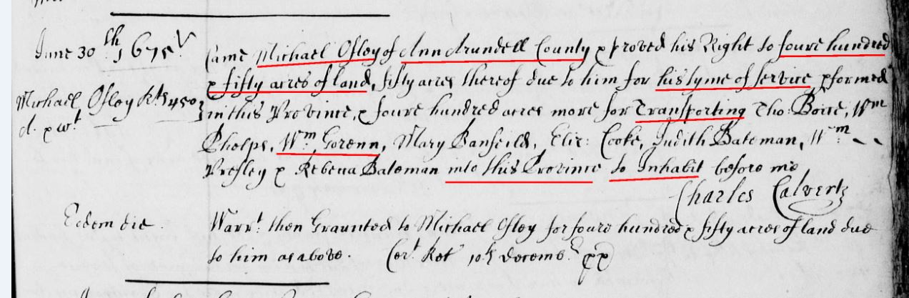 William Gorenn b. abt 1645-55 transp to Ann Arundell Co, MD in 1675
