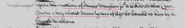 1734 June 6 motion granted to James Vaughan to have Cave Gowen age 7 bound to him in Brunswick Co Va