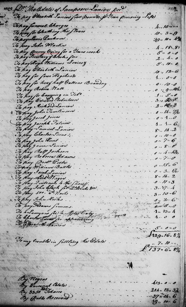 1759 July 23 – Drury Going was paid 5 pounds for a year’s work according to the account of the Brunswick County, Virginia estate of Sampson Lanier which was returned 23 July 1759 [WB 3:297]. Brunswick Co, Va. https://www.ancestry.com/interactive/9085/007644548_00008?pid=1675629&backurl=https://search.ancestry.com/cgi-bin/sse.dll?indiv%3D1%26dbid%3D9085%26h%3D1675629%26tid%3D%26pid%3D%26usePUB%3Dtrue%26_phsrc%3DTqH753%26_phstart%3DsuccessSource&treeid=&personid=&hintid=&usePUB=true&_phsrc=TqH753&_phstart=successSource&usePUBJs=true#?imageId=007644010_00461