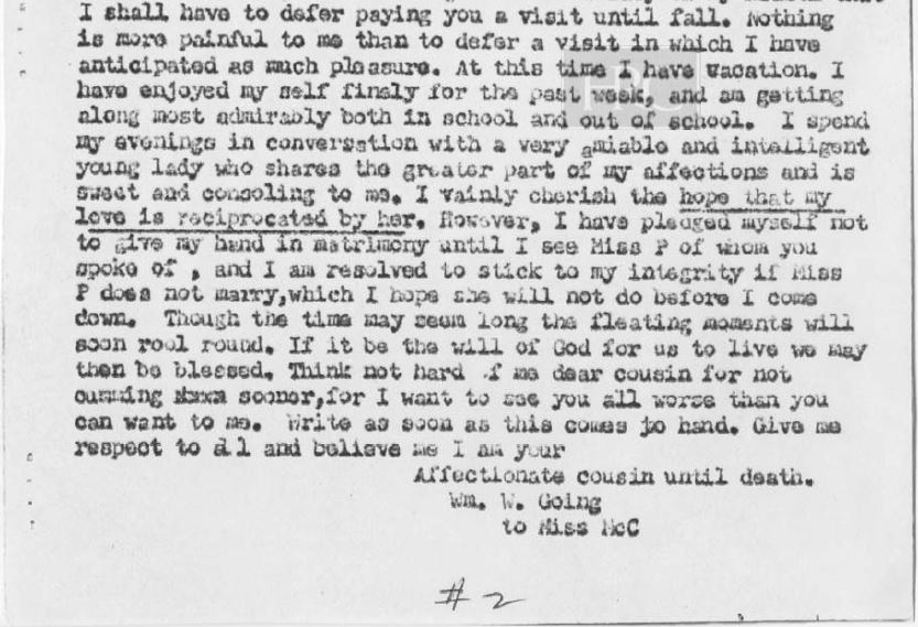 - Theodocia Elvira Going – 1830 – 1916 (It is possible that T. E. Going is the same as Evira Docea Goyen. No information regarding a Ms. T. E. Going has been located beyond William W. Goyen’s letters – (NOTE: I believe that T. E. Going and Elvira Docea Goyen are the same person).
