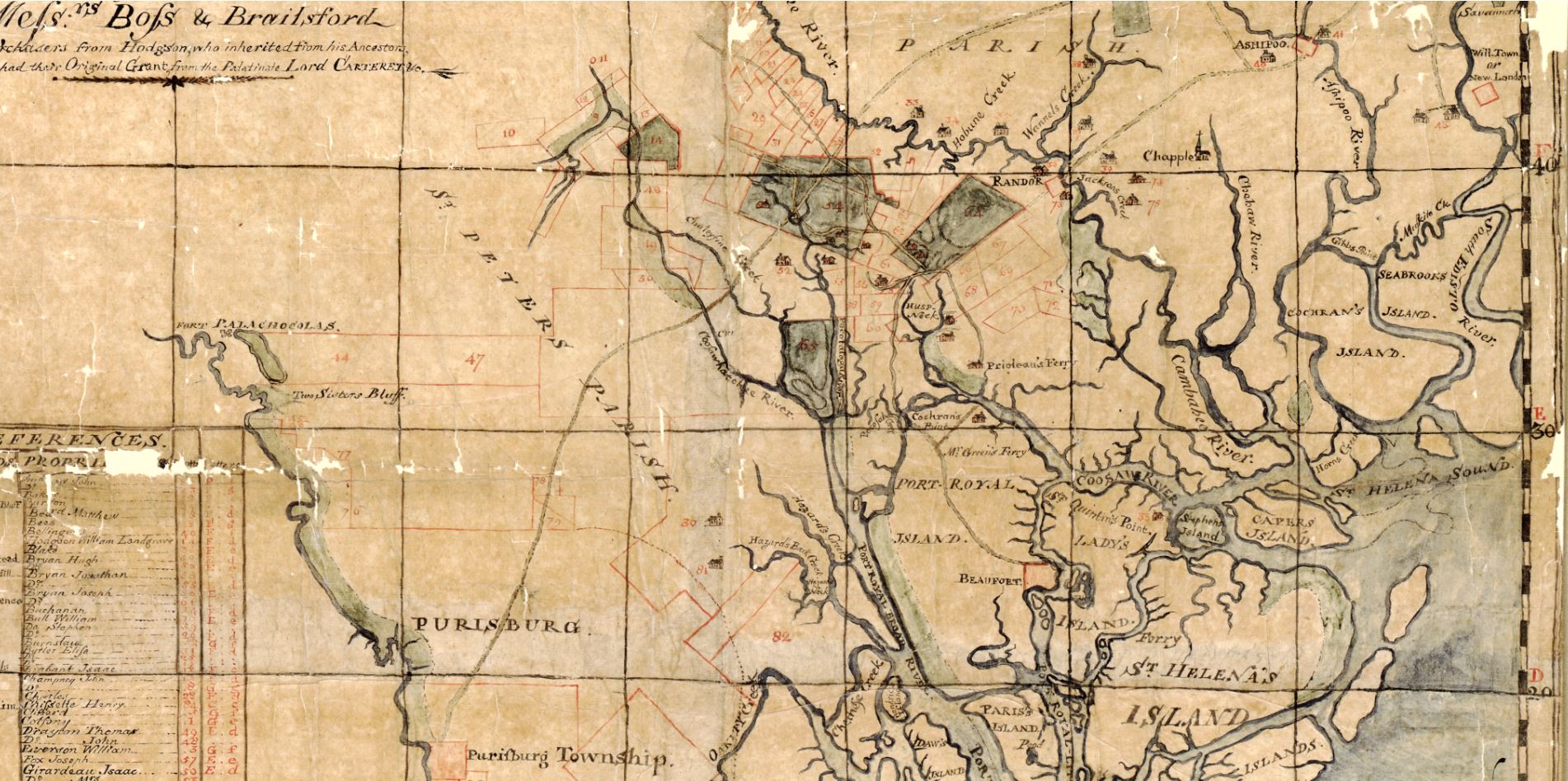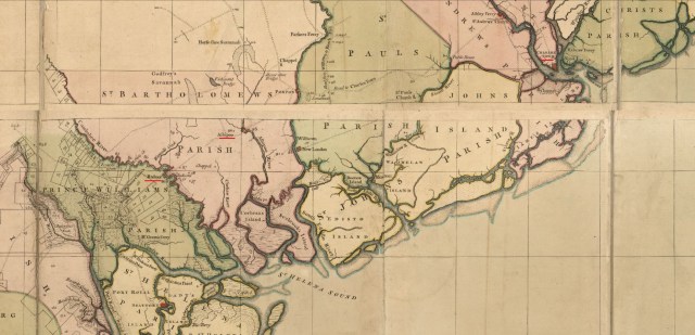 1772 Sept 1 – James Gowen plat for 300 acres in Prince Williams Parish, SC – bounded on all sides by vacant land. Prince Williams Parish, SC. Map shows this to be in either Hampton Co, or Beaufort Co, SC: