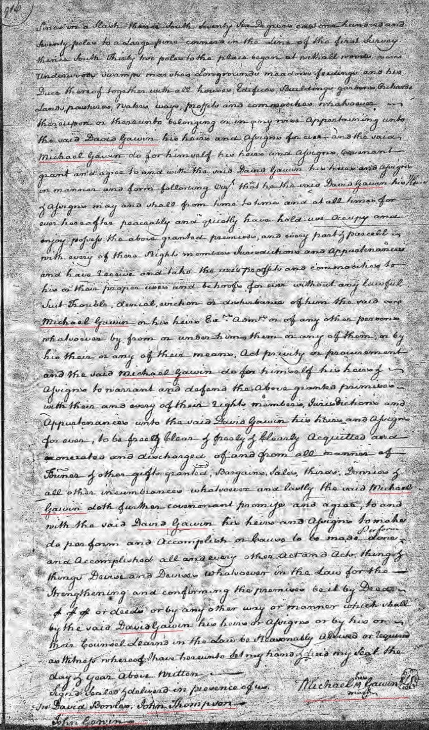 Bounded by Thomas Gowen’s land, John McDonald’s land, Stephen Gibson’s land, and Hayes Swamp