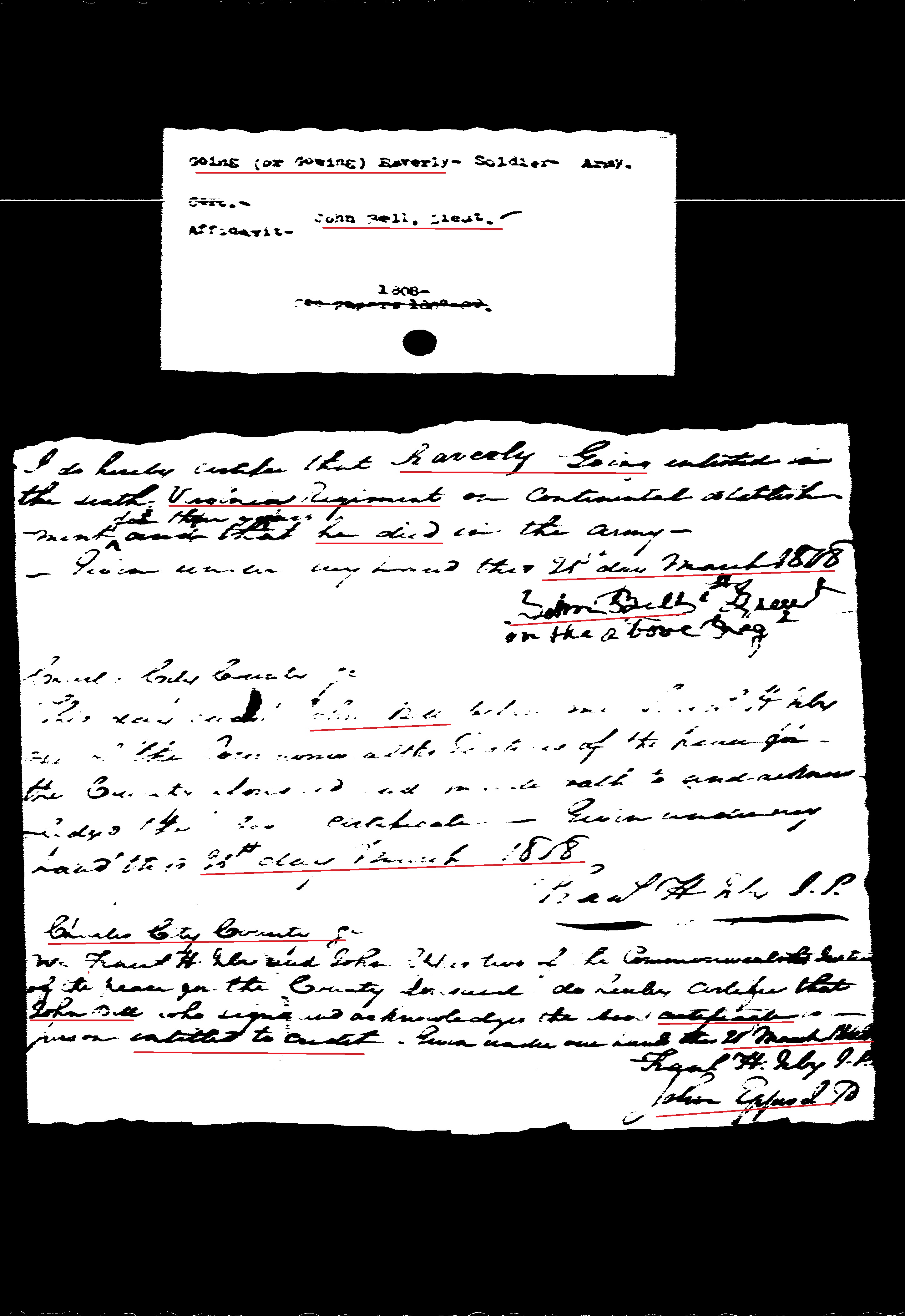 I do hereby certifie that Raverly Going enlisted in the sixth Virginia Regiment on Continental establishment for three years and that he died in the army. Given under my hand this 21st day March 1808