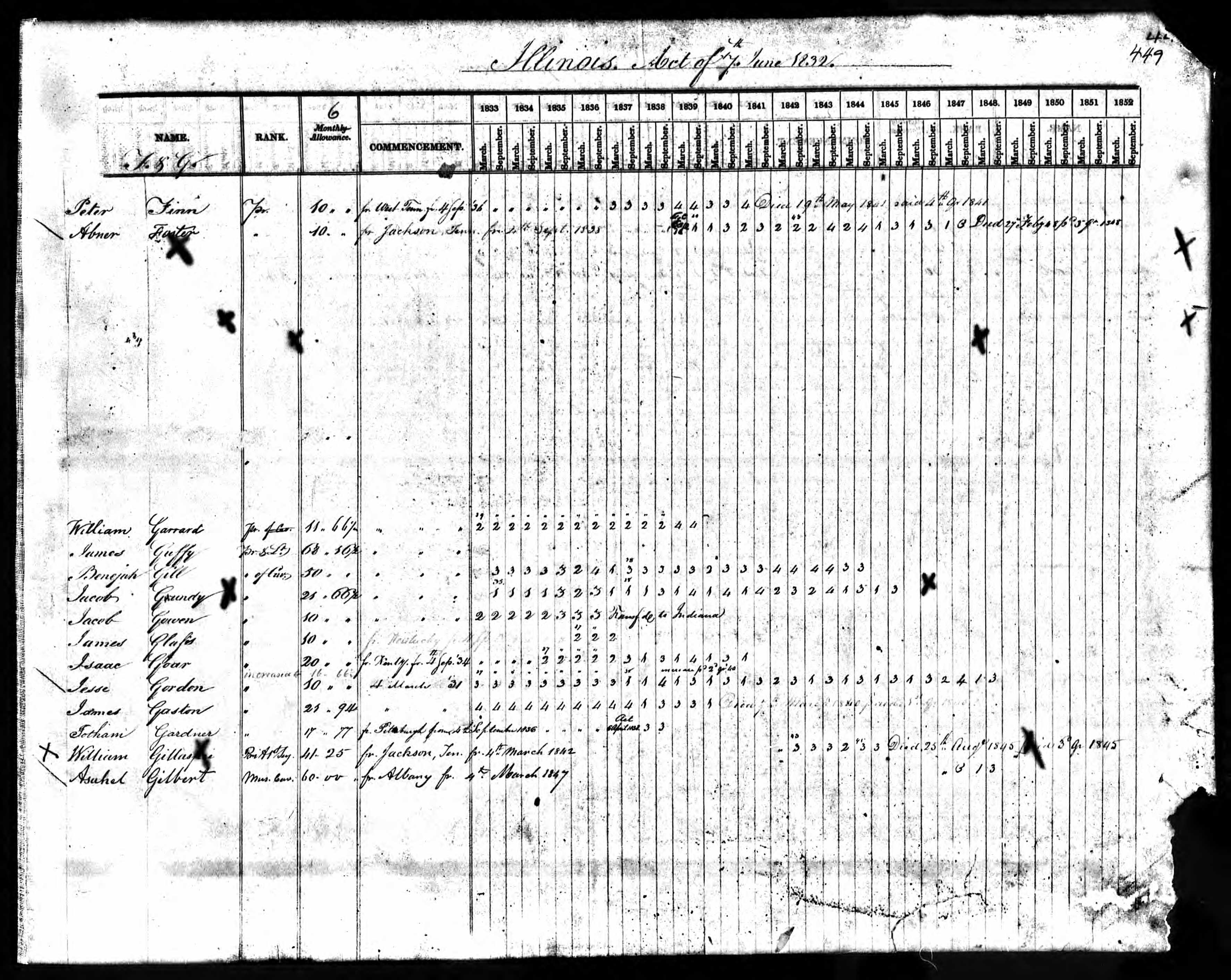 Ancestry.com ling: Jacob Gowen Revolutionary War pension payments in Illinois