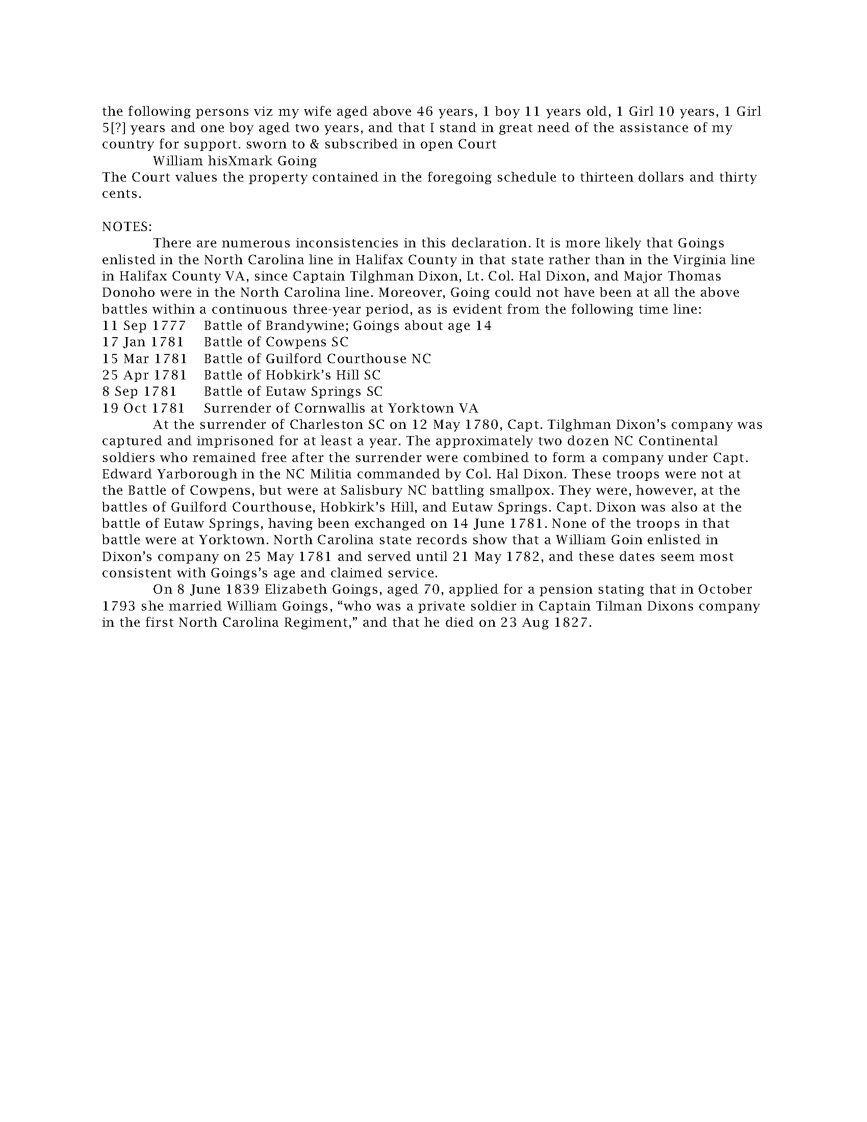 Elizabeth Goings, widow of William Goings, decd. who was a