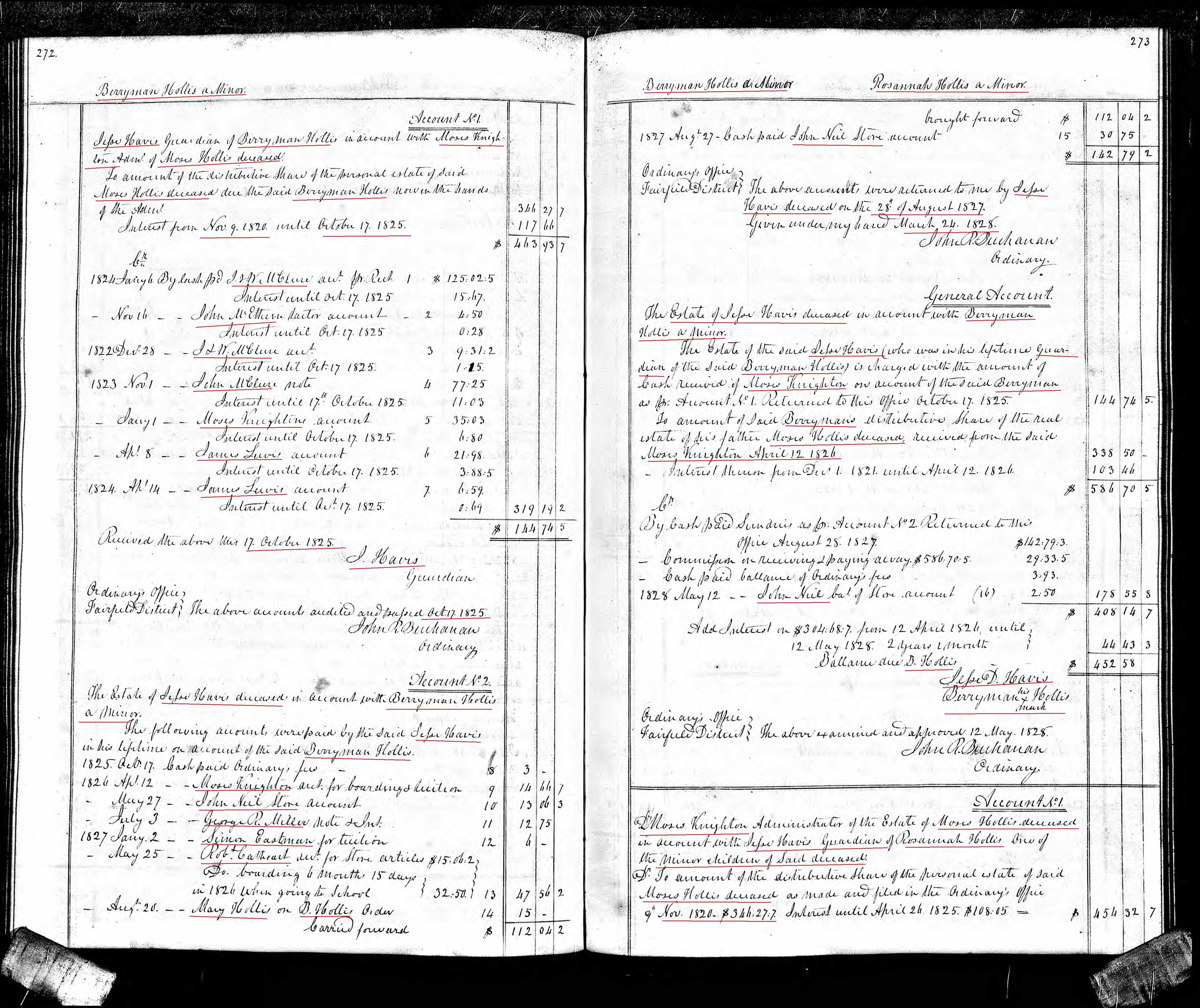 1825 Berryman Hollis and Rosannah Hollis minor children of Moses Hollis probate ppw 1 accounts marked