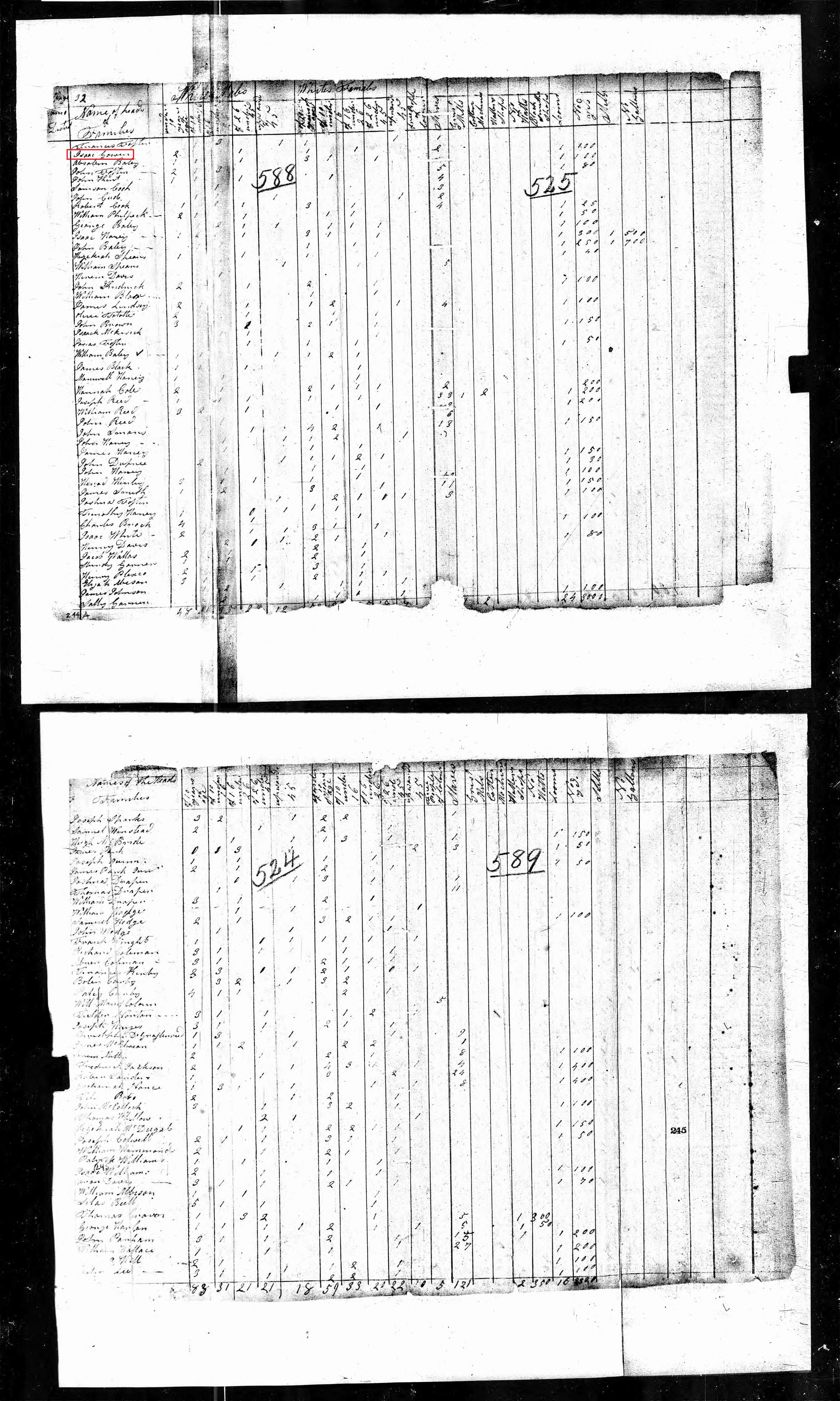 Free White Persons – Males – 16 thru 25: 2 (Isaac Goin – b. betw. 1775-1784)