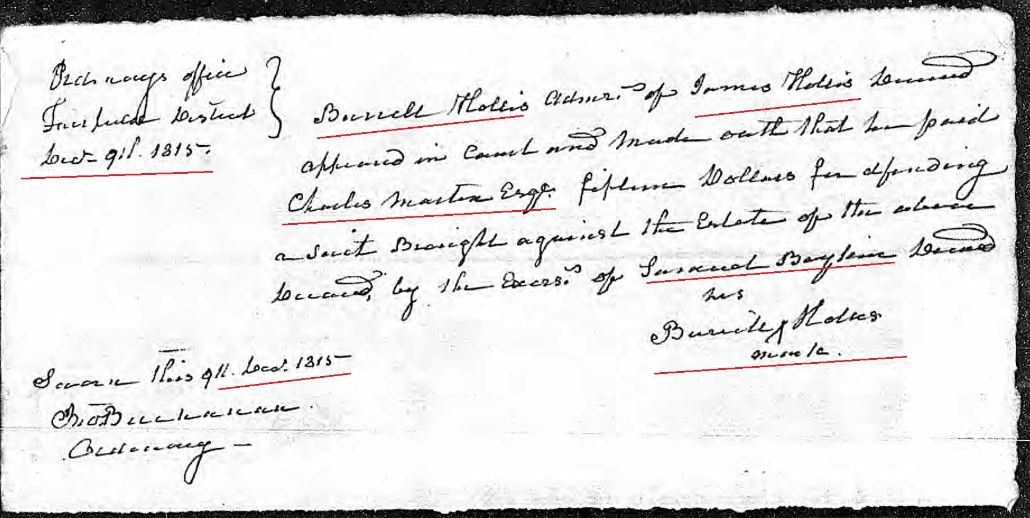 In 1814, the court notes the heirs of Sarah Hollis (James Hollis’ widow) estate are (children of James Hollis Sr and Sarah Hollis):