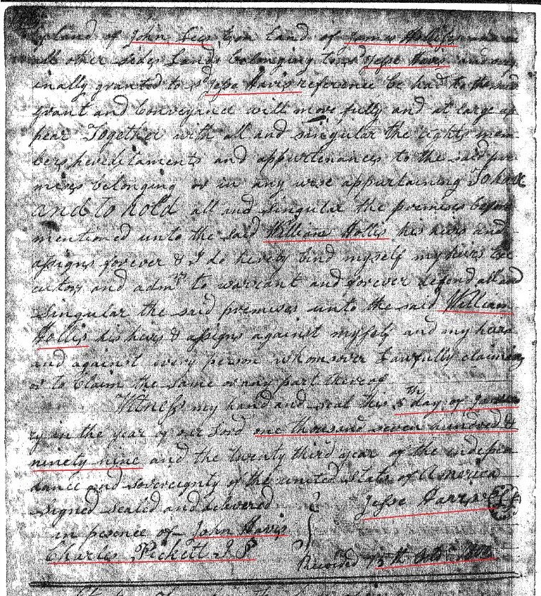 January 5, 1799 Jesse Havis conveyed 150 acres of land in Fairfield County on Wateree Creek to William Hollis Jr. Witnesses: Charles Pickett, and John Havis.