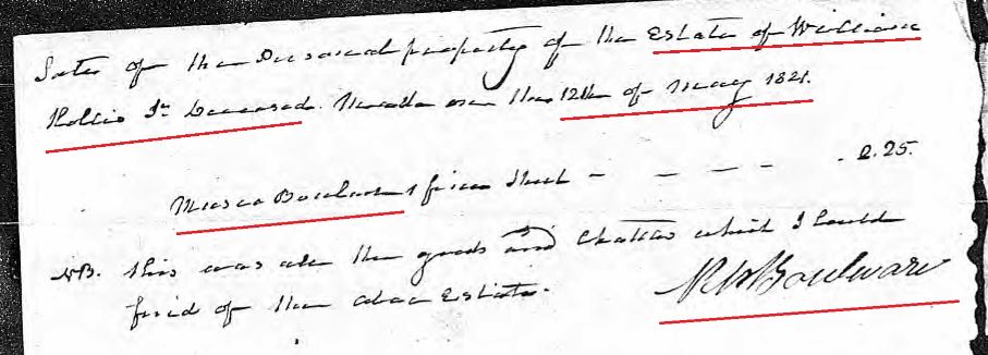 On March 21, 1821, Reuben P Boulware administrator of William Hollis Jr’s estate, was ordered to sell estate property.