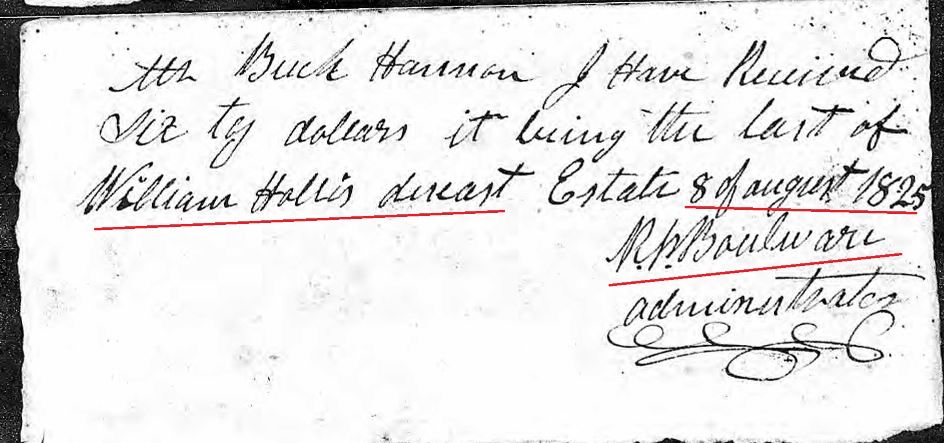 1825 undated Wm Hollis Jr estate receipt