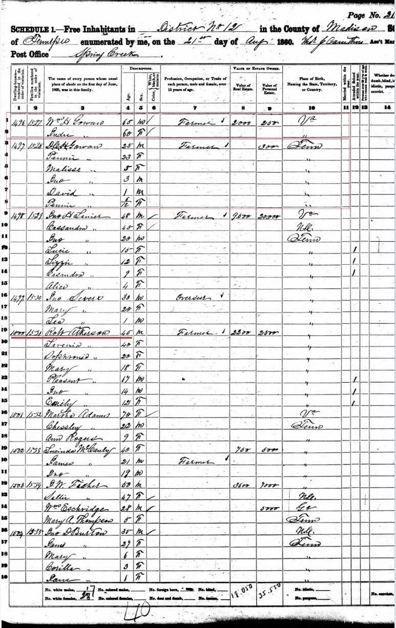 1871 Madison Co, TN – widow (PO Spring Creek) Tenn