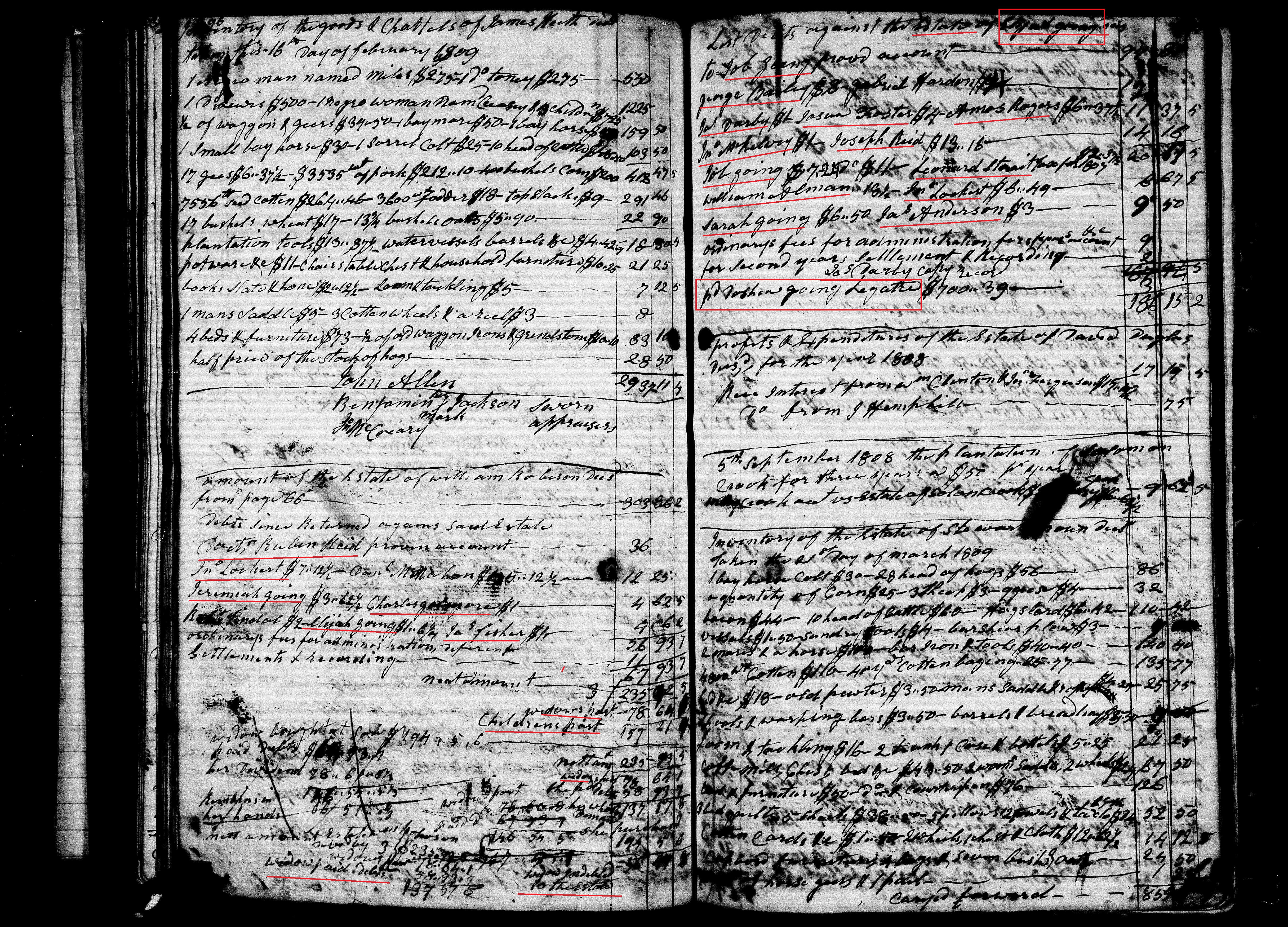 Know all men by these presents that we, Isaac Going and Asa Tindall are held & firmly bound to Joseph Brown, Ordinary of Chester District in the just and full Sum of Five Thousand Dollars to be paid to said Joseph Brown or his successors ordinary of the said District or their certain attorney or assigns to which payment well & truly to be made. we bind our selves & every of our —- & every of our heirs, executors and administrators on the whole & for who jointly and severally by these presents Sealed & dated this Eleventh day of January of our Lord One thousand Eight hundred and nine, the thirty-third year of American Independence.