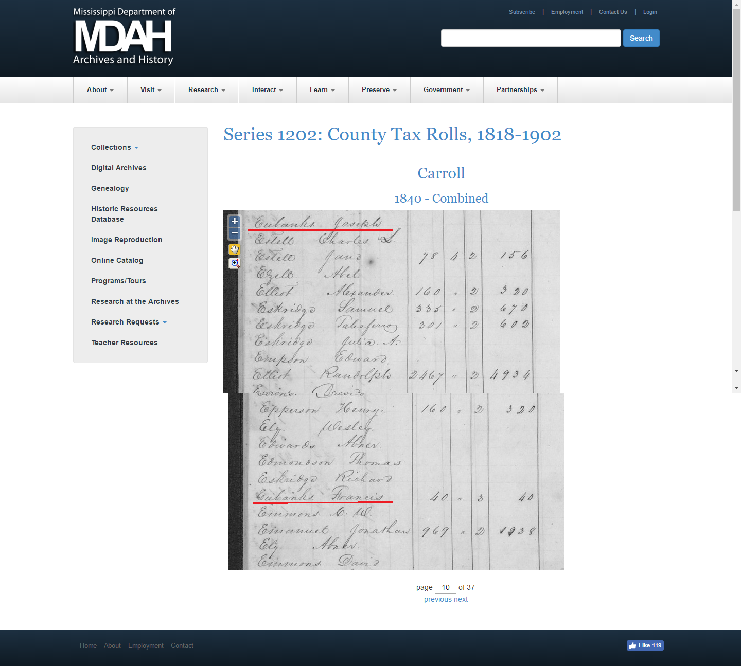 Carroll County MS Family Search Wiki page: https://www.familysearch.org/en/wiki/Carroll_County,_Mississippi_Genealogy