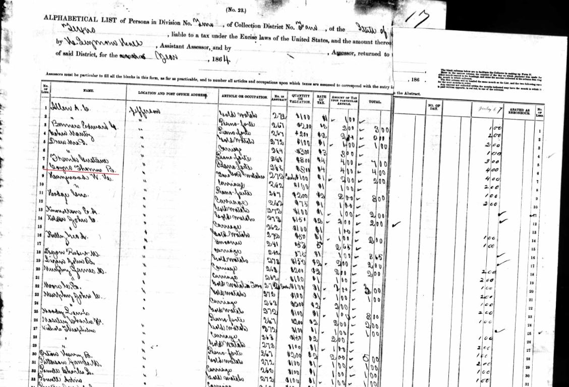 b) Page 22 lists – Thos B. Goyen – tax of 25