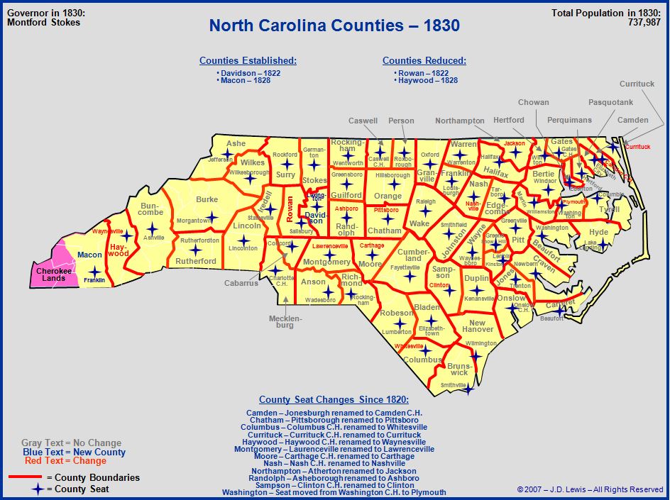 1830 North Carolina Counties