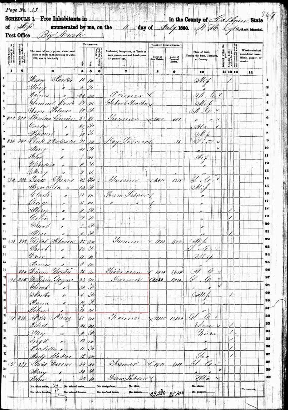 William Goyens 8 b. in Mississippi