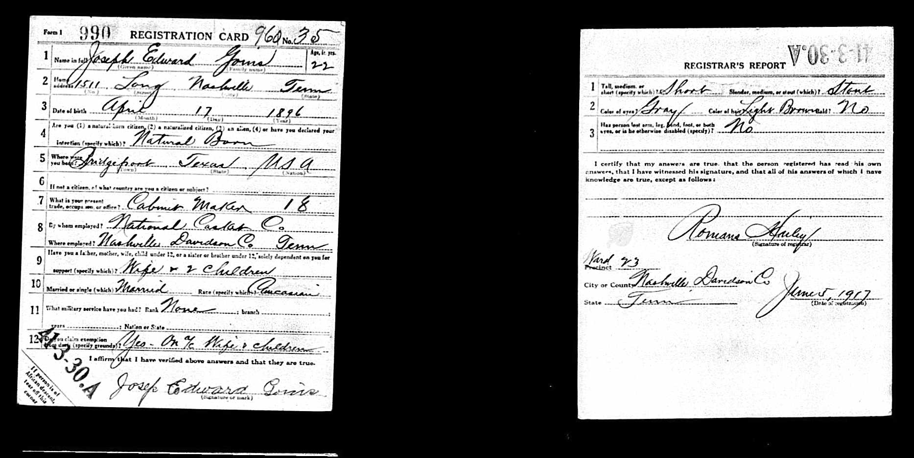 1896 Apr 17- Joseph Edward Goins b. in Bridgeport, Tx – d. in Davidson Co, TN