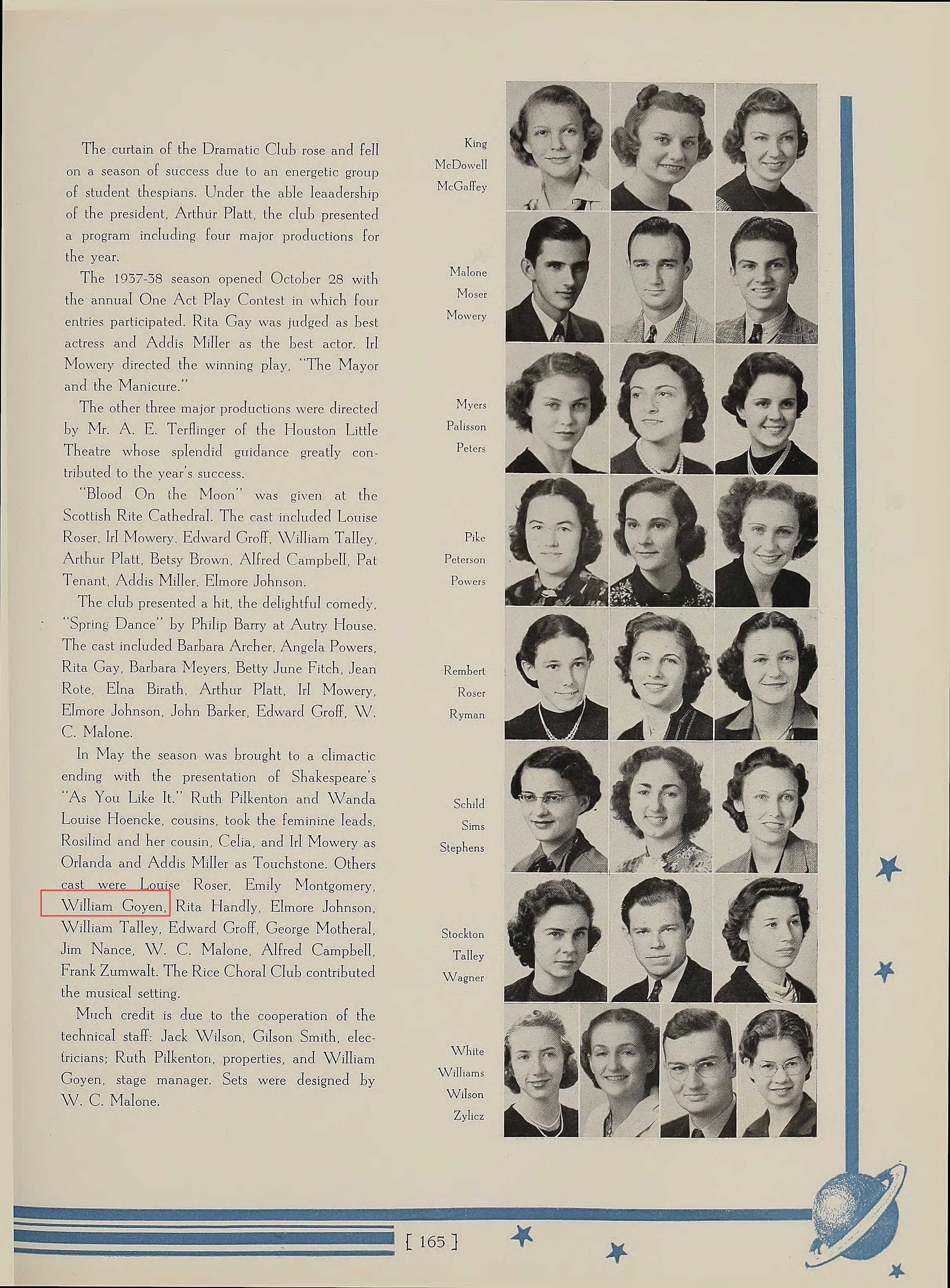 Charles Provine Goyen, BIRTH 16 AUG 1893 • Calhoun, Mississippi, USA, DEATH 1 JUL 1968 • Houston, Harris, Texas, USA married to