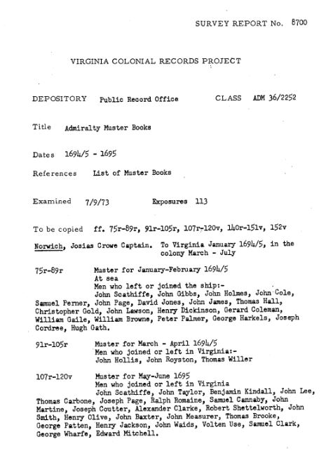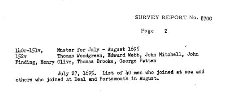 1694 John Hollis muster on ship in Virginia p1 & 2