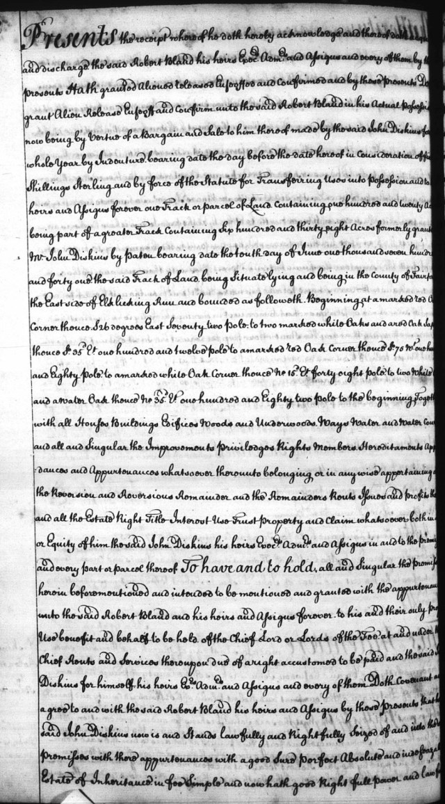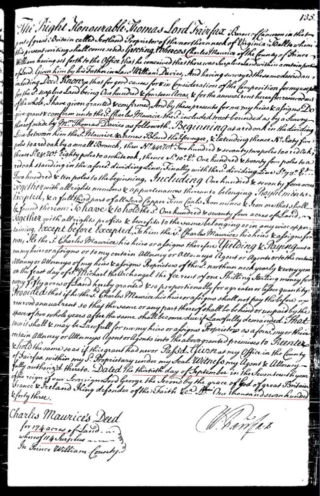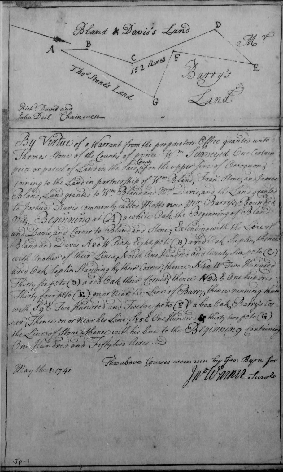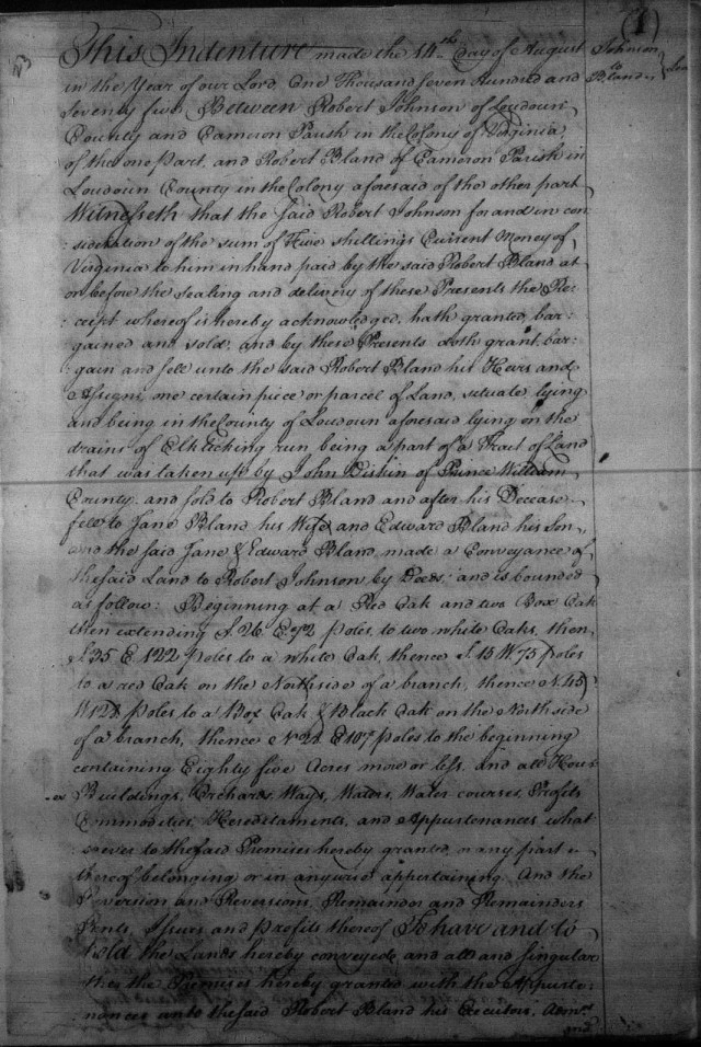 1 – 1711 deed to William Bland, James Bland and Francis Stone for 354 acres on both sides of Occoquan