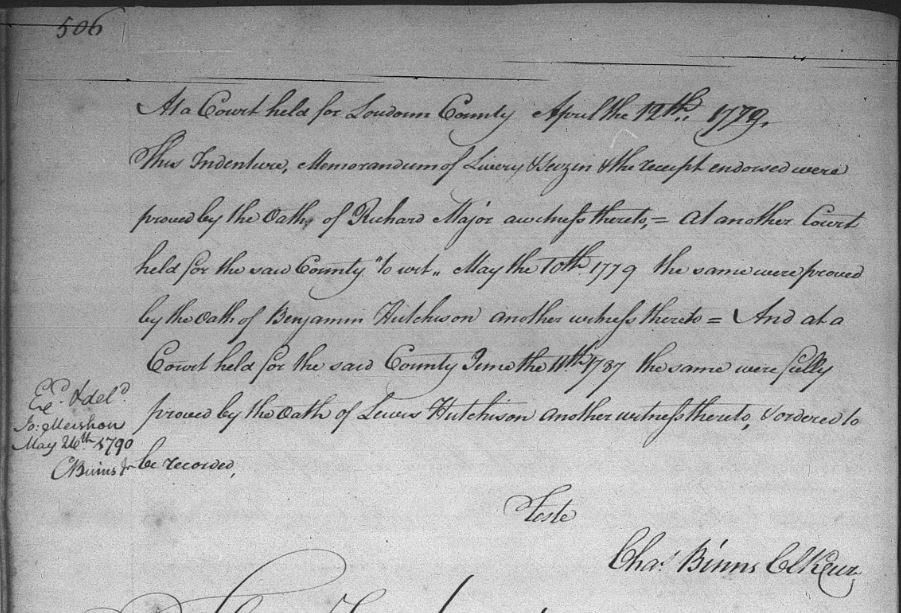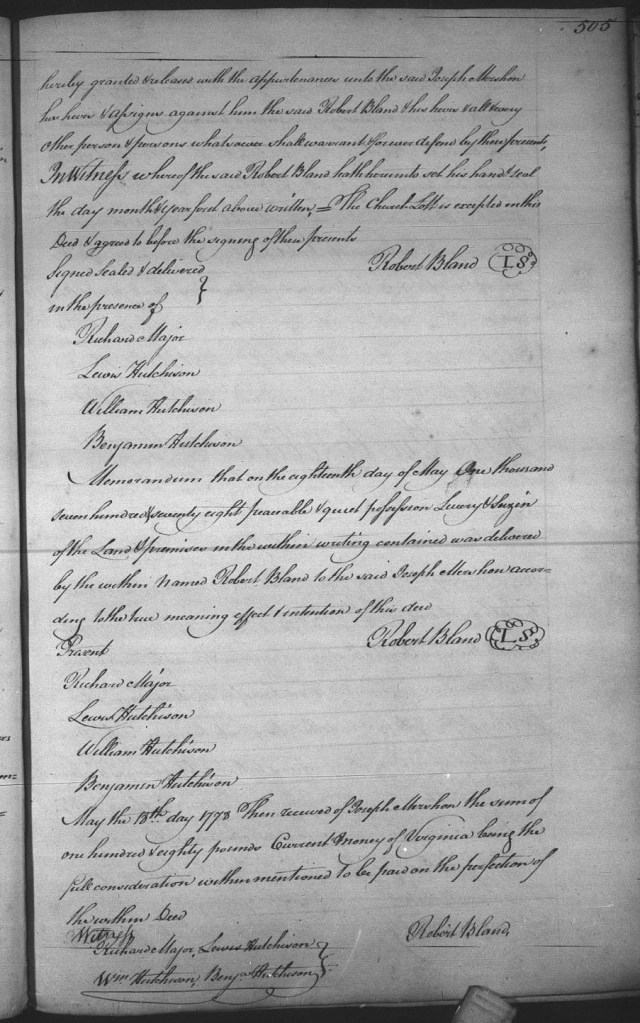 3 – 1771 lease from Robert Bland to Thos Hutchison in Loudoun Co Va late dwelling place of William Bland for 20 years, adj Tayloe alias Grymes, Muse, Hutchison (near 1752 deed on border of Fairfax)