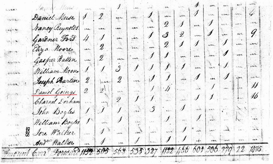 Hugh Goings’ household is listed adjacent to Daniel Goings.