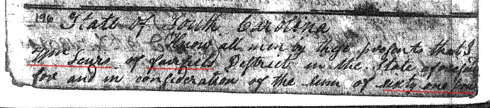 Fourth, I give and bequeath to my Son Daniel Gowens one Negroe Girl name Cloe, one Negroe fellow named Tom Jones, one Negro Boy named Peter and one Negroe Woman named little Rachel; one Cow and Calf; also a plantation of four hundred and ten acres of land, composed of the Tract of one hundred Acres, the land I now live on, to descend to him after the Death of my Wife Jean Gowens, and of three hundred and ten Acres to be laid off from McNeels Tract, on the Side adjoining the Said one hundred Acres; also one Still, containing eighty-four gallons and five Stands; the whole to him and his Heirs forever.