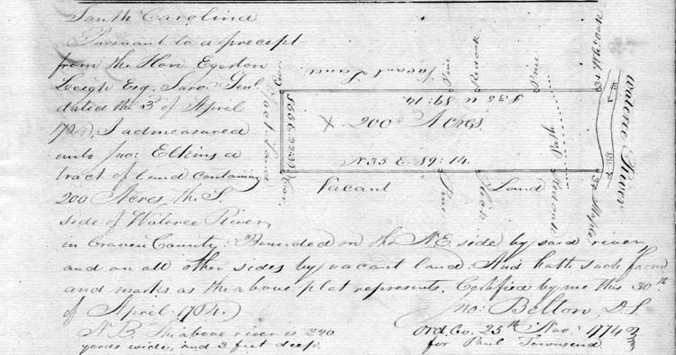 1764 April 30 – John Elkins Plat For 200 Acres In Craven County. Date: 4/30/1764