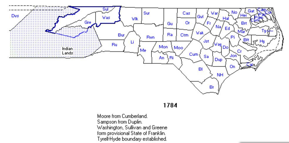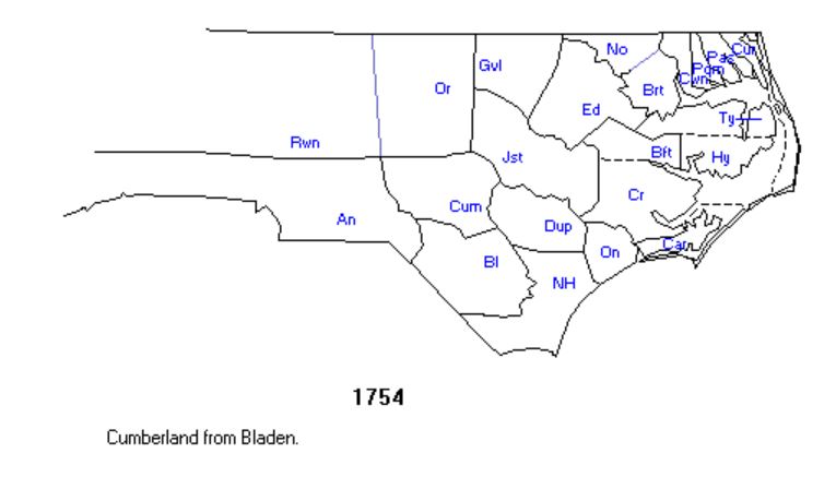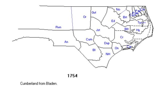 1754–Cumberland County was created 19 February 1754 from Bladen County.