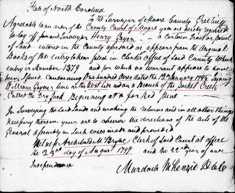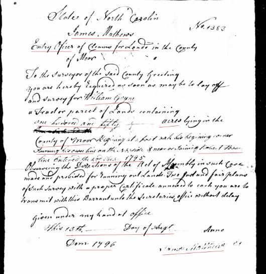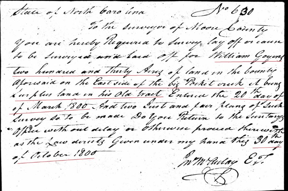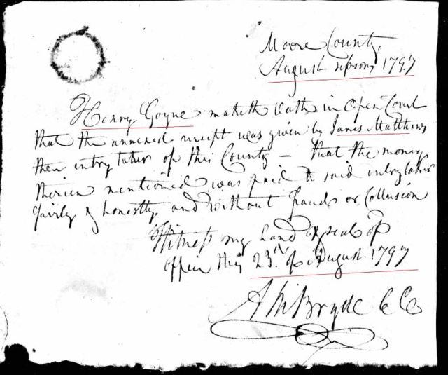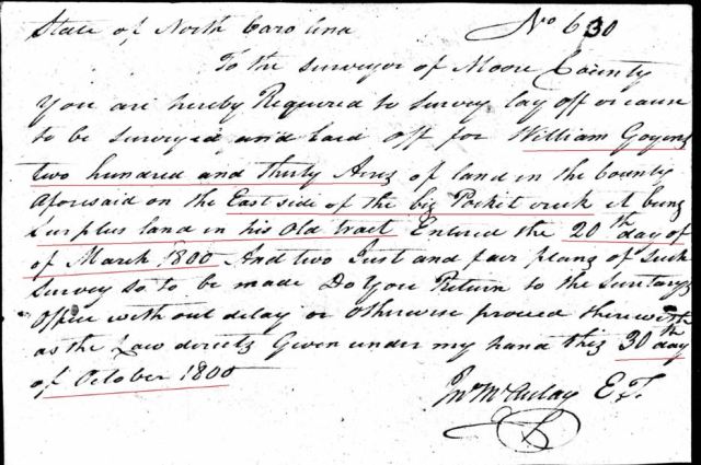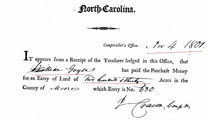 - Henry Goyne b. ? in Moore Co, NC land in 1799
