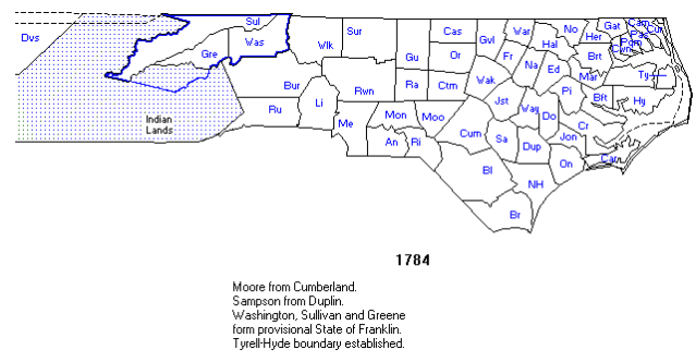 1784–Moore County was created from Cumberland County.