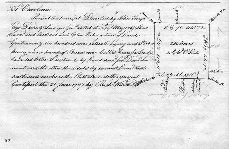 - Ann Goin plat for 100 acres on Feb 15, 1765 on Broad River, SC