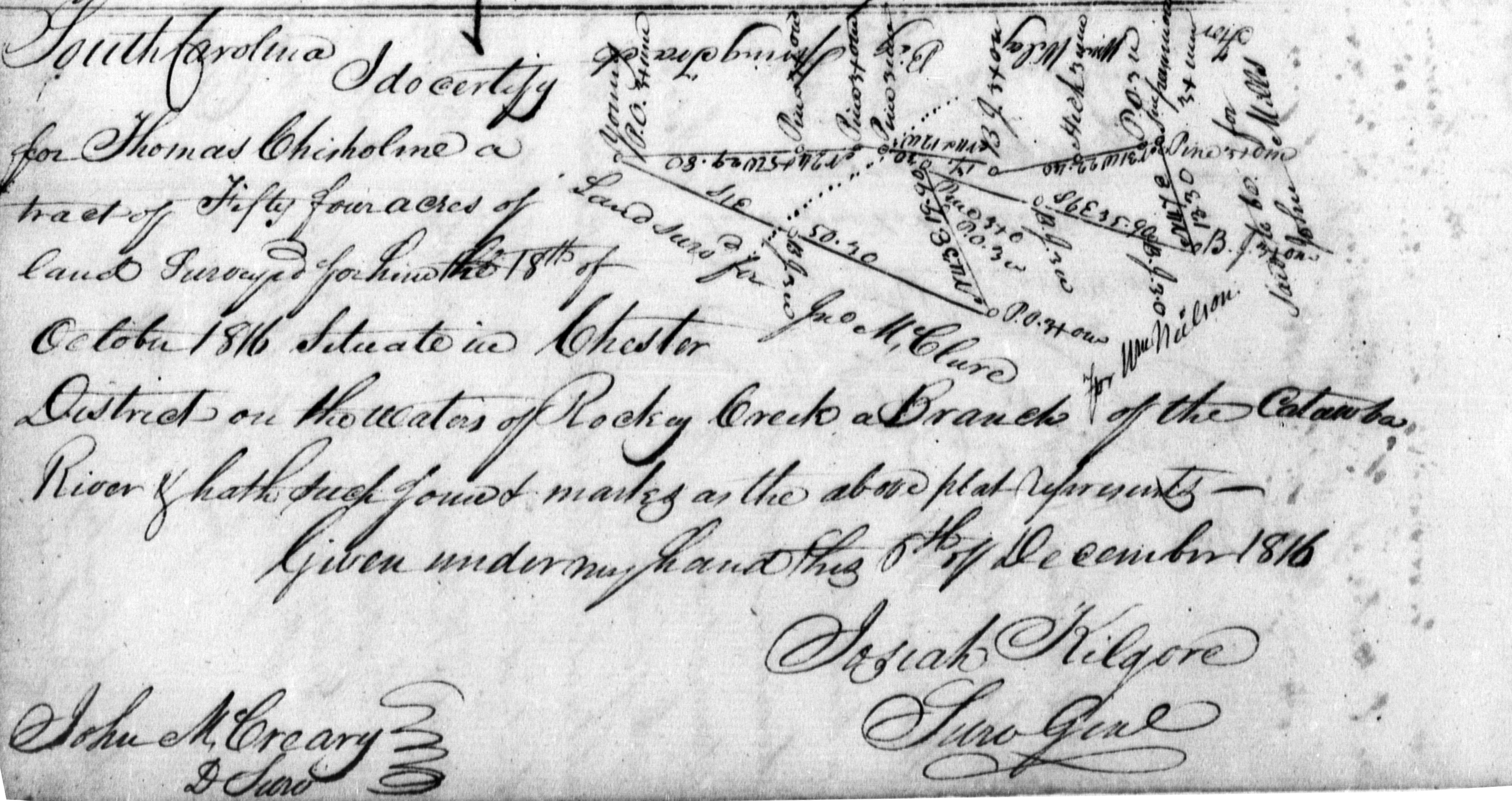 … I Thomas Chisholm of Rockey Creek in District of Chester, Planter …this my Last Will and Testament …