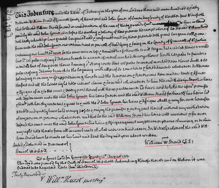 (The following abstract appears to incorrectly list the name as John “Gower” – but the above copy, and deeds that follow in the Granville County, NC, show this to actually be the name of “Gomer”)