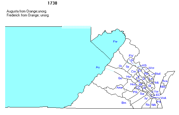 (See bottom of page for county changes from 1720-1791. Brunswick Co was huge from 1720-1745 – it ended up being divided into many different counties – starting with Lunenburg Co in 1746).