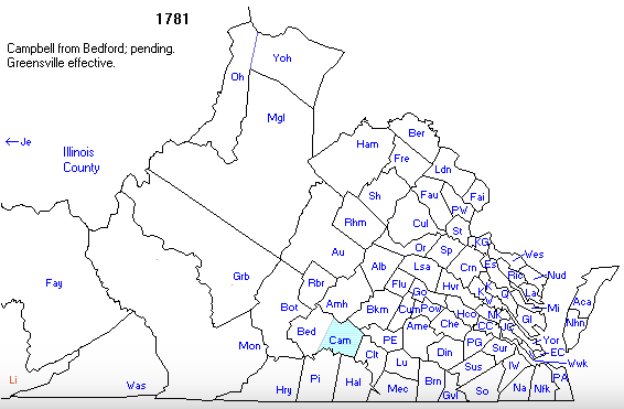 - Campbell Co, Va (created from Bedford in 1782)