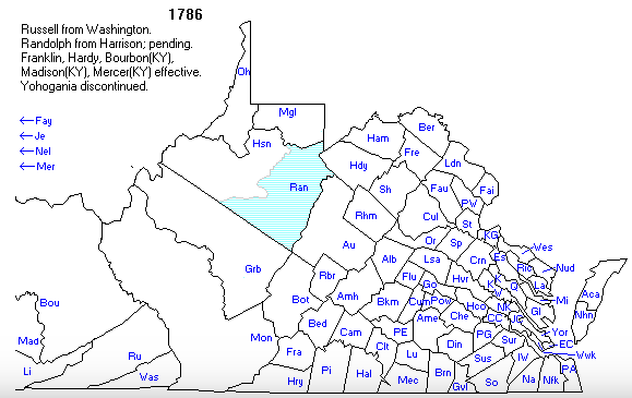 - Franklin Co, Va (created from Bedford and Henry in 1786)