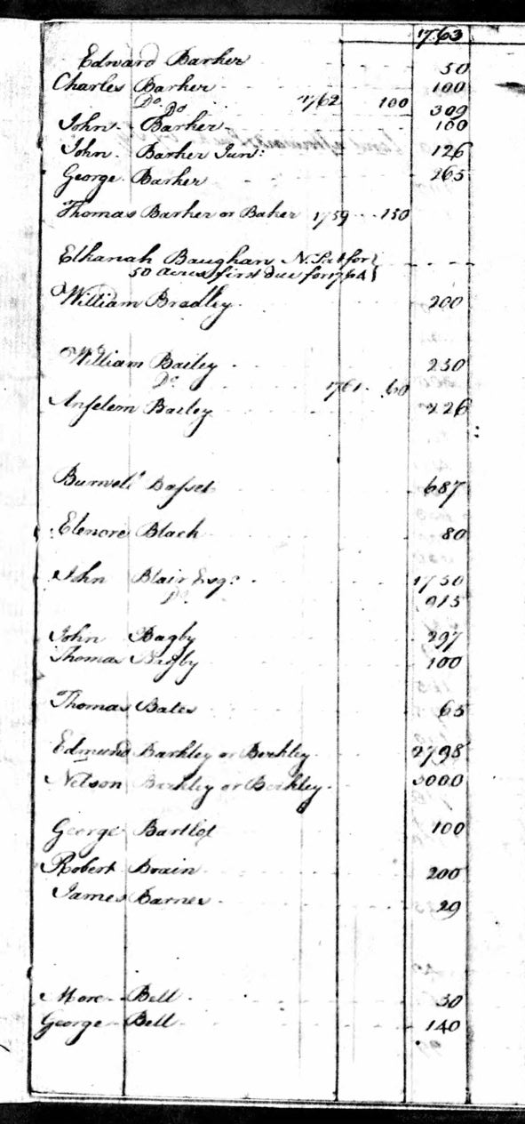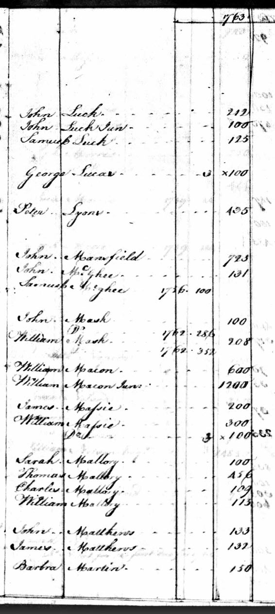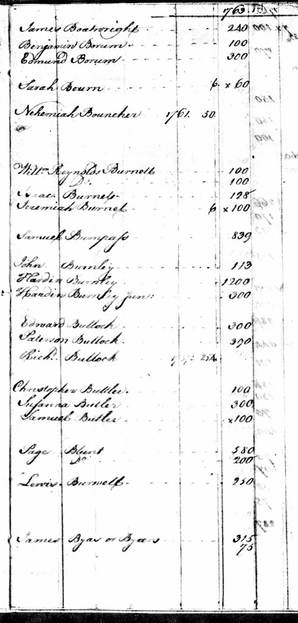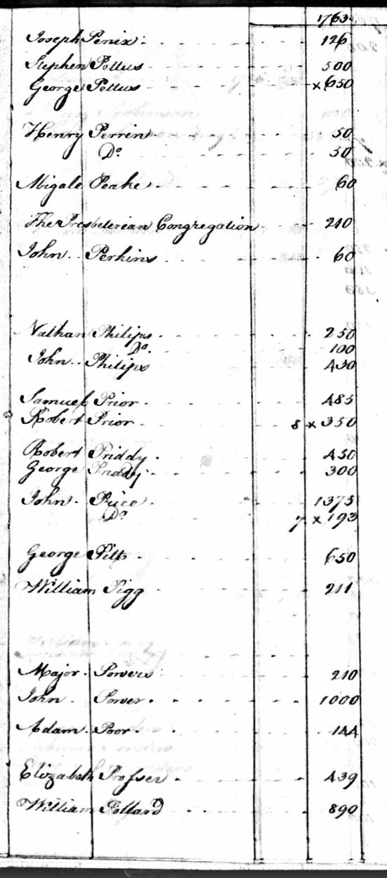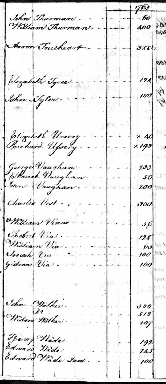 The following is the Hanover County, Virginia rent roll list that is commonly called “Rent Roll of Hanover County, Virginia, 1753-1763”. In reality it is just 1763’s rent roll list that has a few notations about prior years within the 1763 list. I ordered the information from the noted periodical anticipating it would have several years of rent-rolls – unfortuanately not – it only has the following information transcribed.