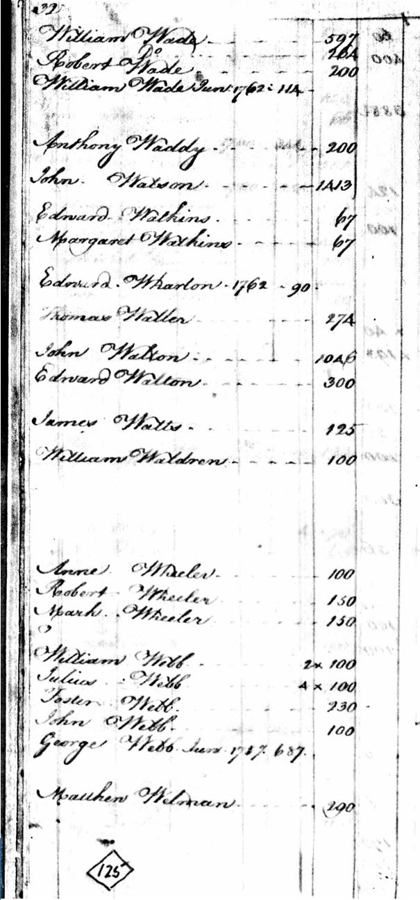The severall persons names in Companys yt wer ordered to possession and remark ye bounds of each mans land viz: … (list includes Theophilus Watson) … By order of ye vestry – Registered … me. Charles Turner, Clk of ye vestry.