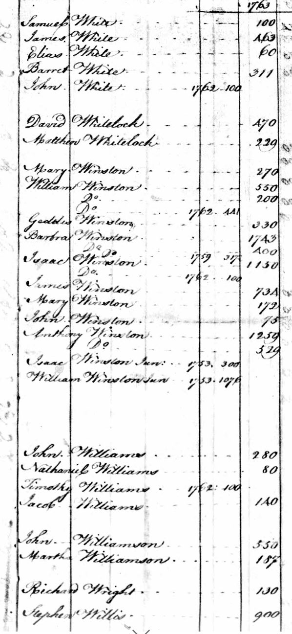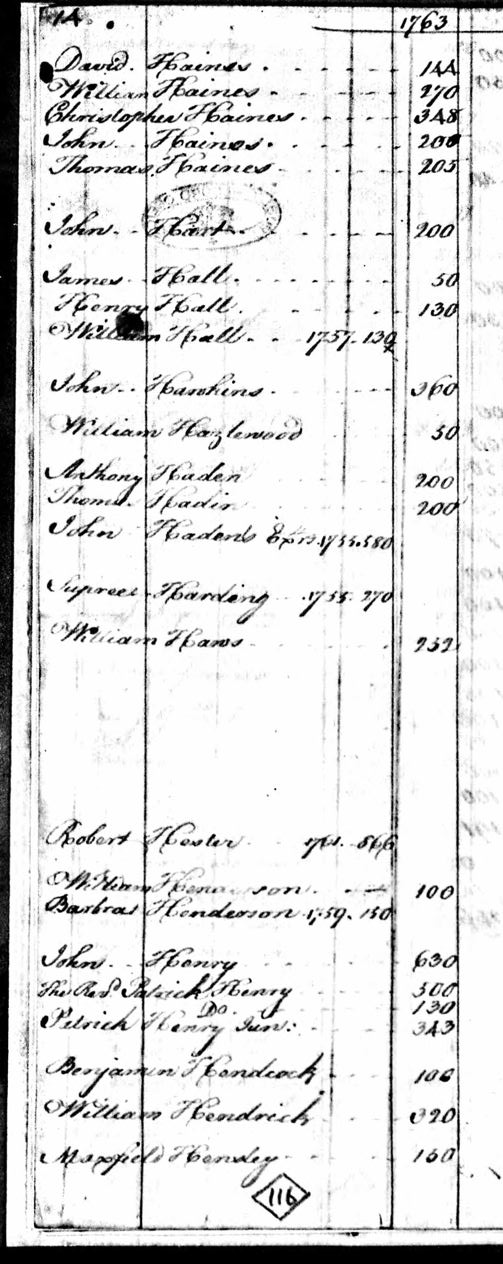 The following is the Hanover County, Virginia rent roll list that is commonly called “Rent Roll of Hanover County, Virginia, 1753-1763”. In reality it is just 1763’s rent roll list that has a few notations about prior years within the 1763 list. I ordered the information from the noted periodical anticipating it would have several years of rent-rolls – unfortuanately not – it only has the following information transcribed.