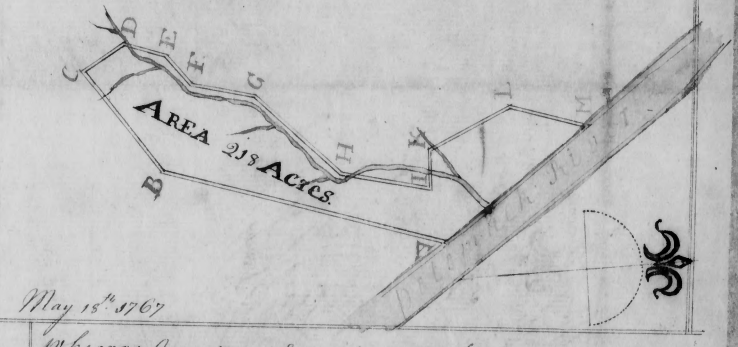 1707 July 8 – … Whereas Thomas Goin of the County of Westmoreland … did on the 8th day of July 1707 obtain a warrant from our office for laying out … returned a survey thereof under the hand of Thomas Gregg … confirm unto the said Thomas Goin 653 acres of land … on Potowmak River … near The Falls in the County of Stafford … bounded … beginning at a markt white oak standing on the upper side the mount of the Lower Spout Run by or near the land called Ousley’s land and extends up the said branch south … to a markt white oak standing in a forck of the said Branch then still by the same course to the Miles End at another markt white oak thence north … to a markt red oak standing near the head of a glade then north … to a markt red oak standing by a branch then north … to a markt hickory on the River side finally down the meanders thereof South … East … to the first beginning … fully autorized thereto dated the 8th day of December … 1708 … Virginia Land Grants, Grant No. 42 from the proprietors, Book 3, p. 204. https://www.familysearch.org/ark:/61903/3:1:3Q9M-CSYD-F9VT-N?i=676&cat=414338