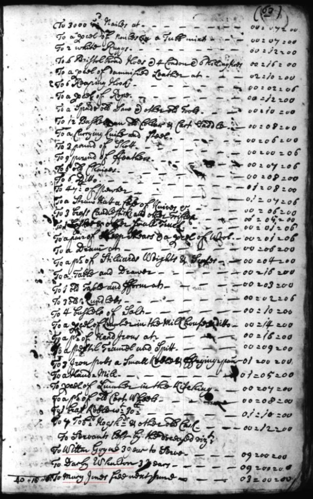 1692 July 28 – Abraham Smith v John Hartley, judgment granted for 380 pounds of tobo.