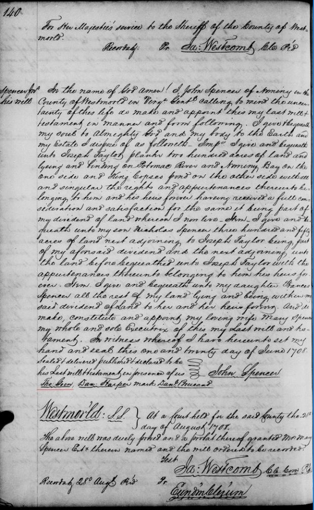 1733 March 27: WESTMORELAND COUNTY, VIRGINIA DEEDS & WILLS. No. 8. Part 2; 1723-1738 {Antient Press}: pp 13-15