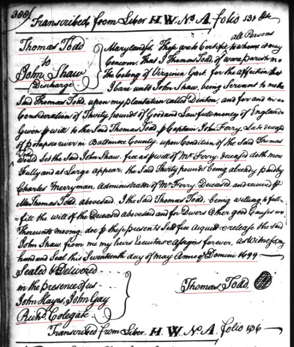 Source: 17:376 Film No: Esau Goeing Husband of Ann, service by 1672; MSA SC 4341- 1672 Goeing, Ann 17:376 Film No